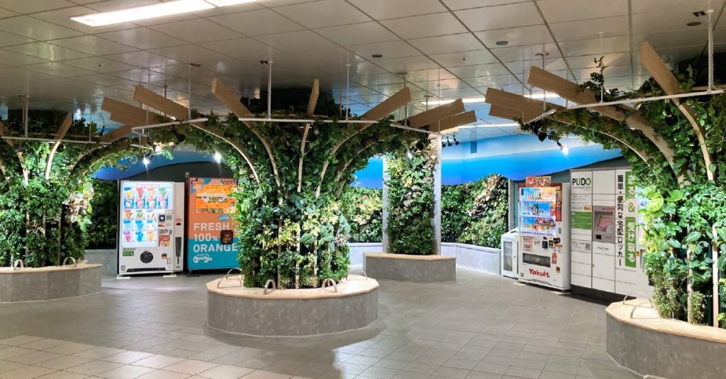 福岡市地下鉄 駅コンコースに緑の休憩スペースができました!
